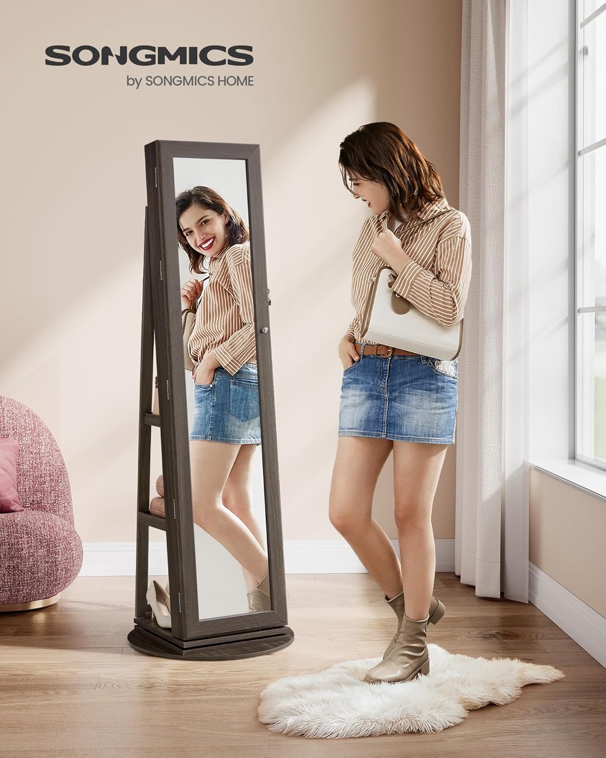 • [3-in-1 Design] This jewelry cabinet features a full-length mirror, a spacious storage area for your accessories and 3 shelves on the back, welcoming your bags and storage boxes Everything you need to start your day is in one spot now