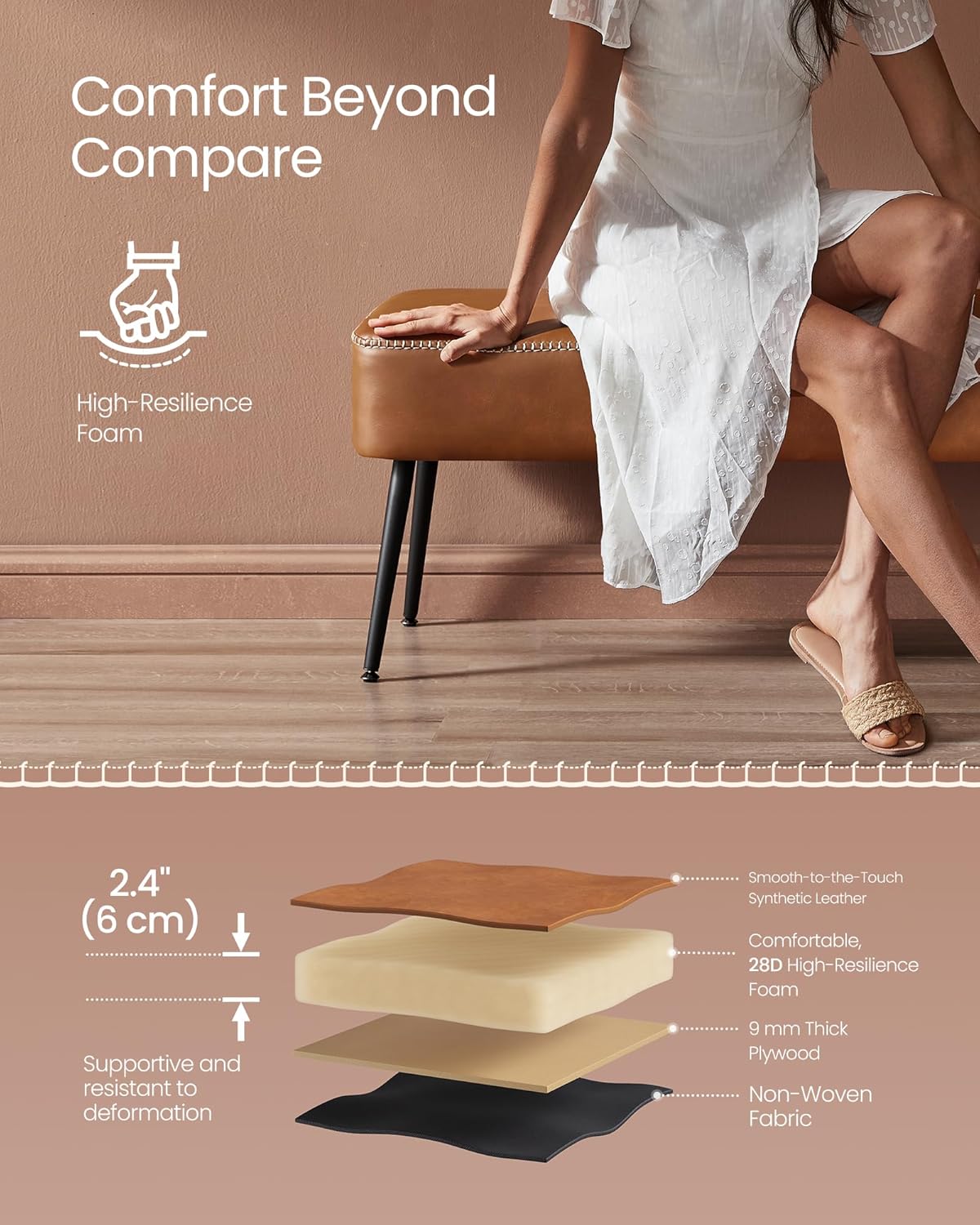 - [Comfort at Every Sit] Glide your hand over the smooth cover, then sink into the supportive 2.4" (6 cm) thick, 28D high-resilience foam. This padded bench provides a comfortable seat that endures, standing the test of time without deformation