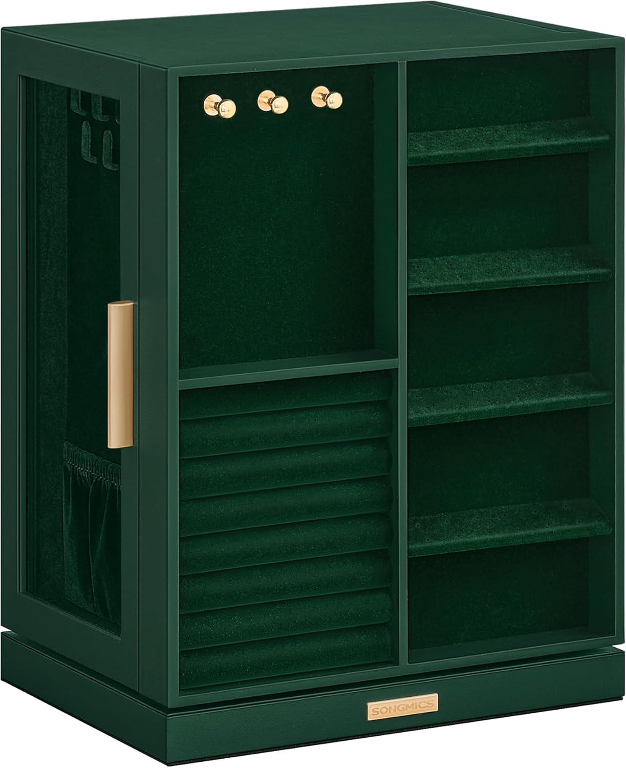 • [Stylish and Protective] This forest green jewelry storage box features sparkling metal handles, a soft velvet lining, and durable MDF construction, ensuring optimal protection for your expanding jewelry collection