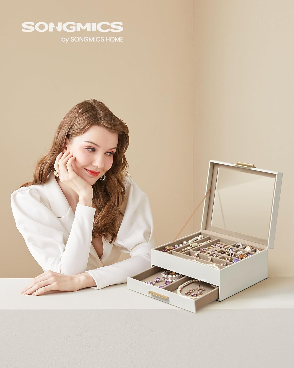 - [Storage, 2 Layers] Keep all your jewelry organized in this jewelry box—small pieces of jewelry go in the various slots of the top layer, and big jewelry goes in the bottom drawer