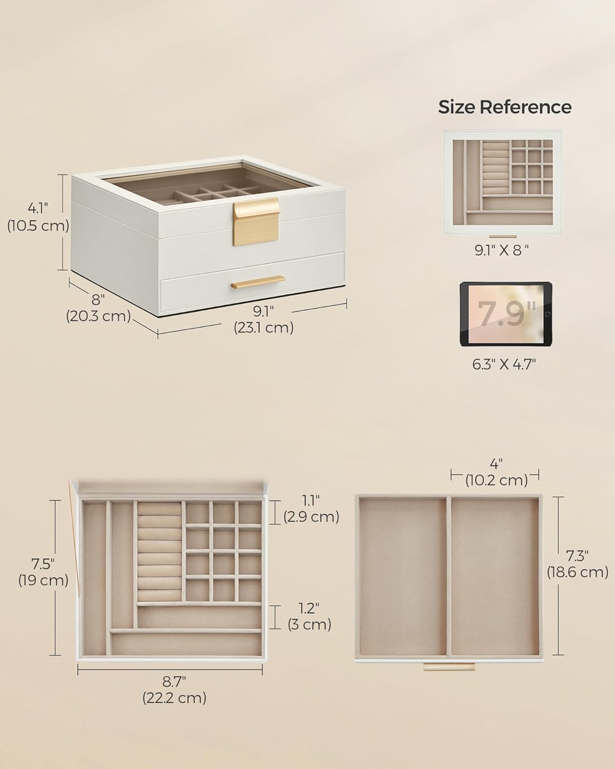 - [Clear Glass Lid] The see-through glass lid of this jewelry organizer allows you to see and find your favorite jewels at a glance while protecting them from dust, keeping your jewelry ready to wear and clean