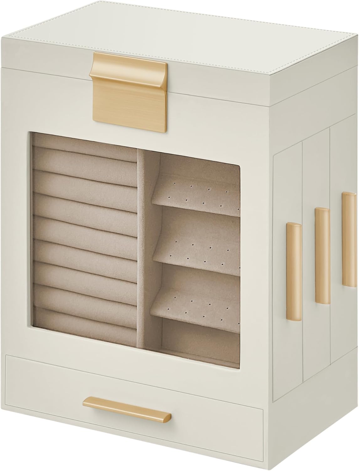 Nordic Hygge Jewelry Box with Glass Window, 5-Layer Jewelry Organizer with 3 Side Drawers, Jewelry Storage
