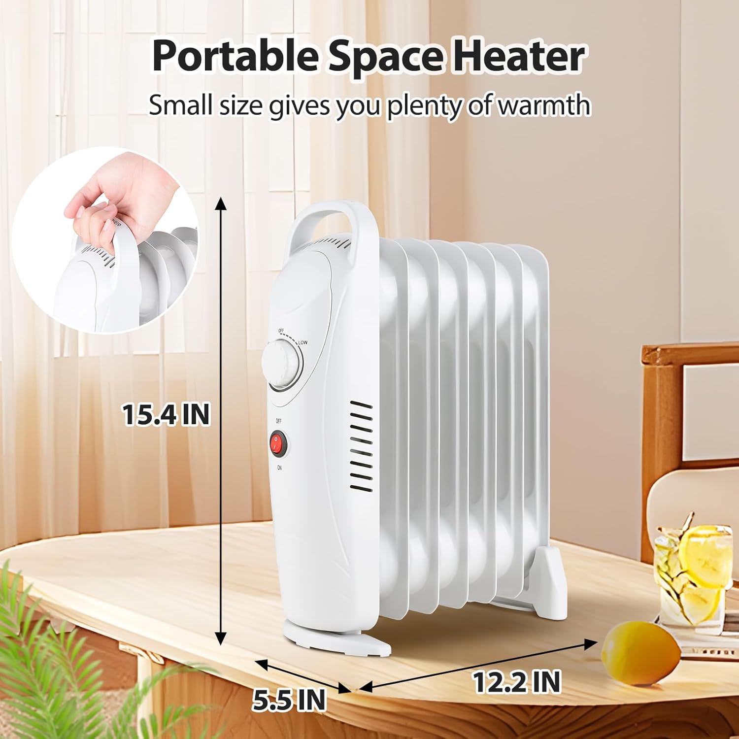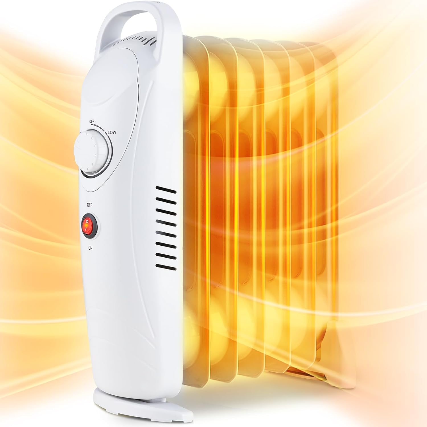 Airo Comfort Oil Filled Heater, 700W Portable Radiant Space Heater with Adjustable Thermostat, Electric Small Quiet Heater with Overheat Protection for Room Indoor Office, White