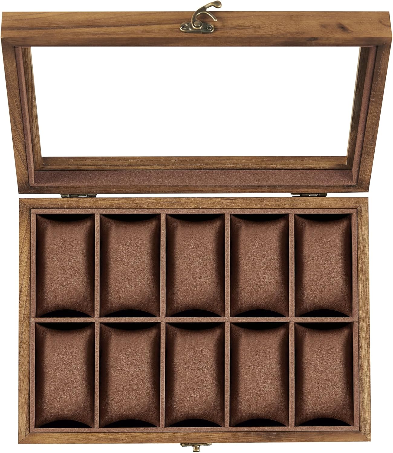 Nordic Hygge 10-Slot Watch Box, Watch Display Case with Large Glass Lid, Removable Watch Pillows