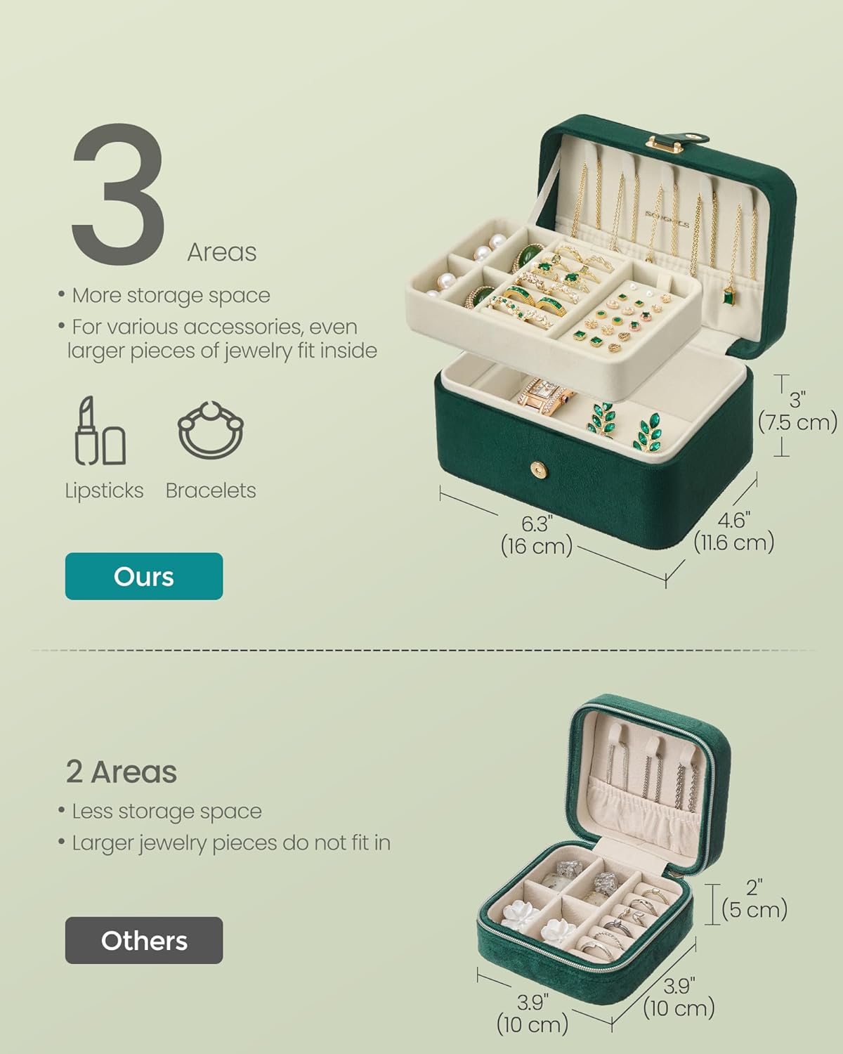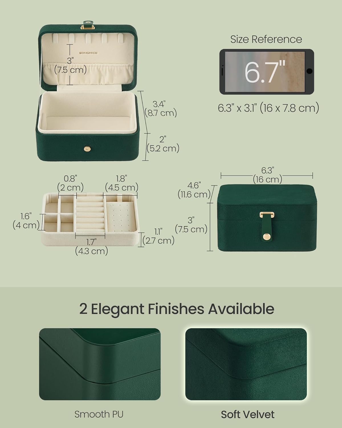 - [Compact and Portable] Our 4.6 x 6.3 x 3 inches jewelry case easily fits in your bag or suitcase, allowing you to bring your favorite pieces on the go. Perfect for travel or business trips. Pack and carry with ease!
