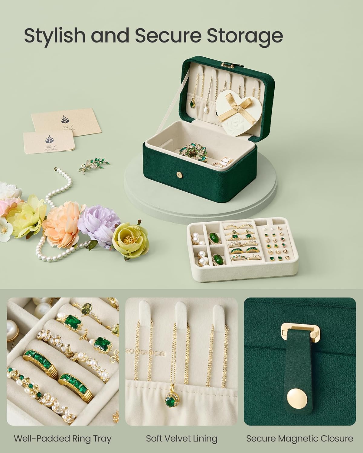 - [Perfect Gift] With its chic design and clever functionality, this compact yet spacious jewelry box makes an ideal gift for yourself or your travel-savvy friends. It's a stylish and practical way to carry your favorite jewelry while on the go