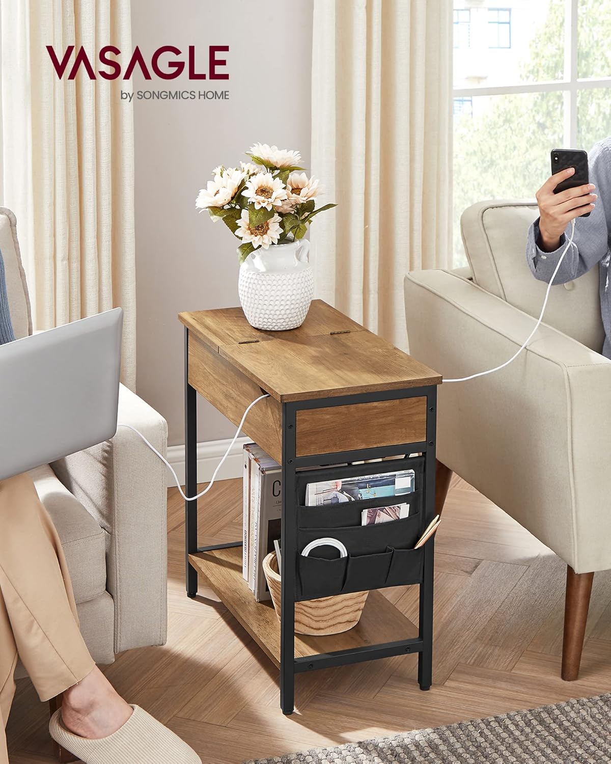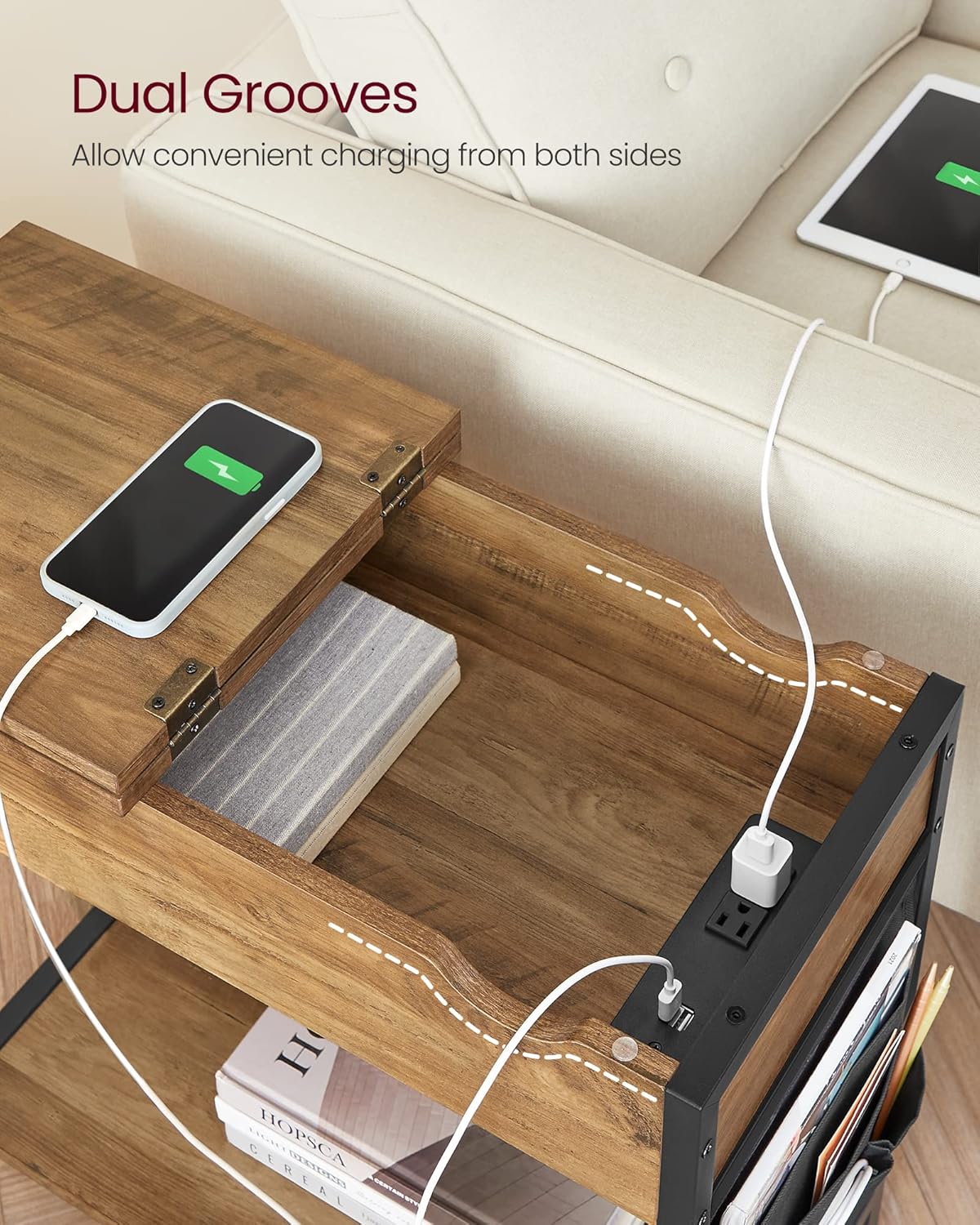 Nordic Hygge JSide Table with Storage, End Table with USB Ports and Outlets, Nightstand with Charging Station