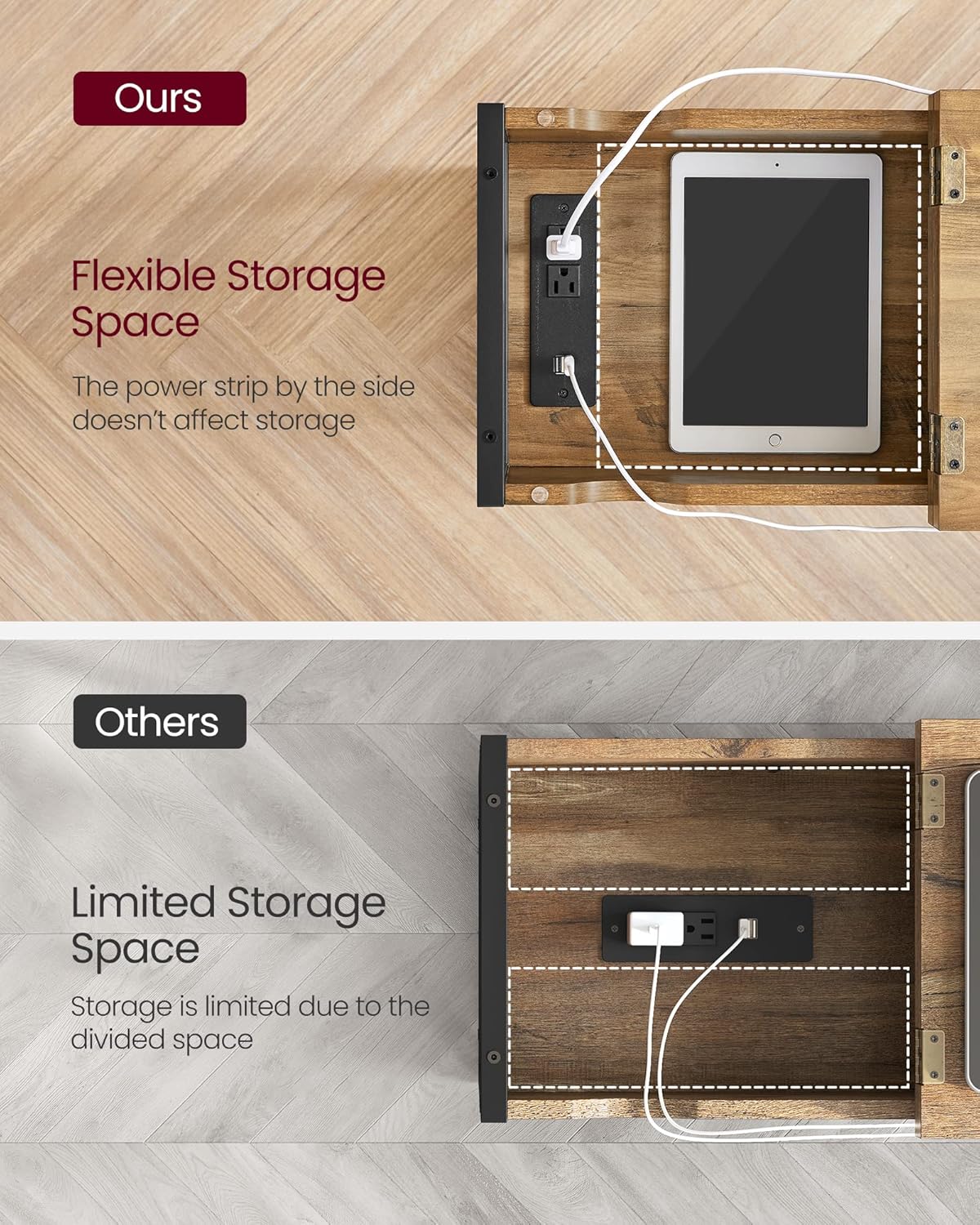 - [Not-Overlooked Details] Grooves on both sides allow your cords to go through, the flippable part of the tabletop is large enough for you to take out items easily, and the power strip located near the side doesn't affect storage—all for your convenience!