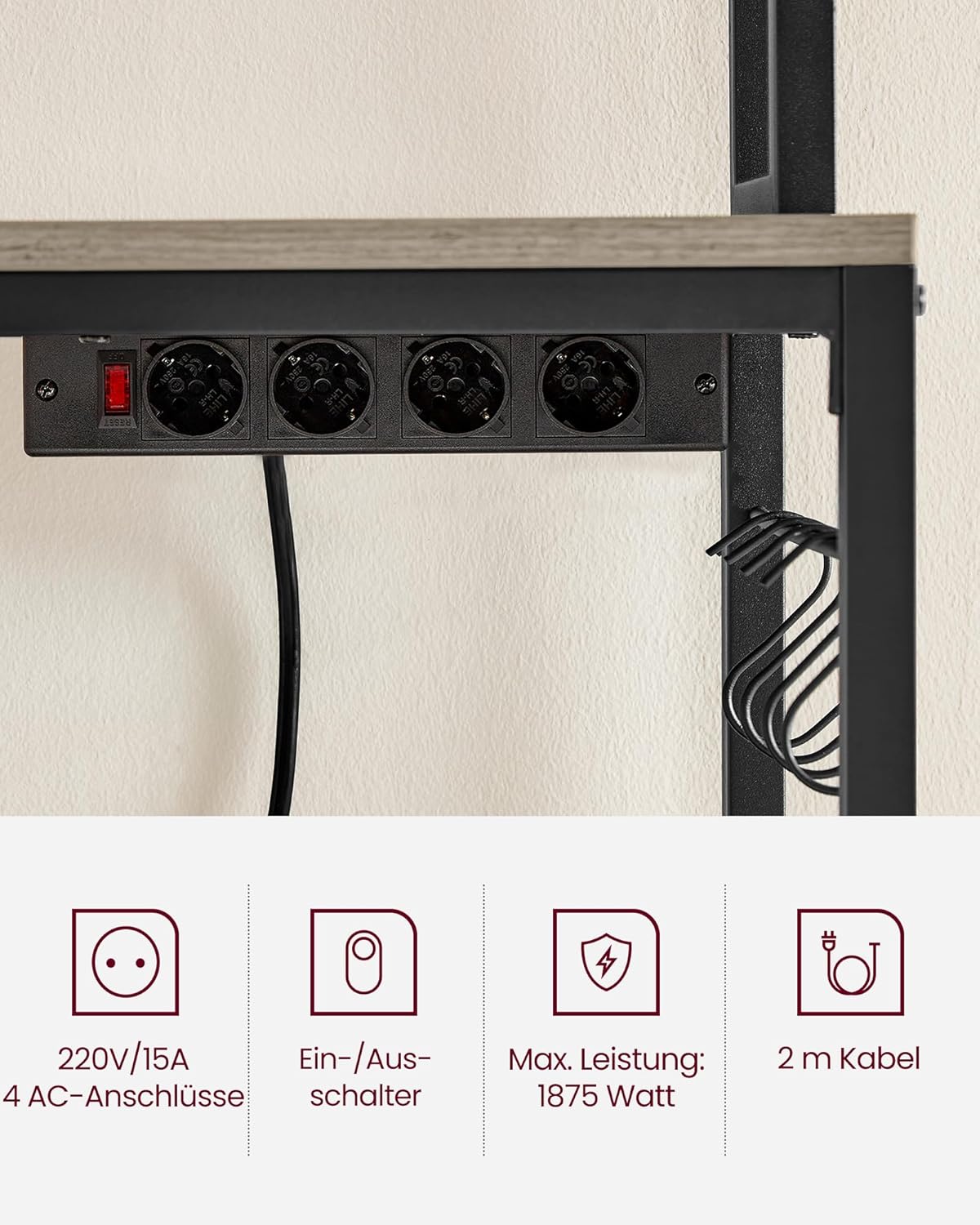 - Safe and reliable: the integrated power strip of this standing shelf provides overload protection, leakage protection and, because it is equipped with an on/off switch, can be switched off when not in use - all for safety!