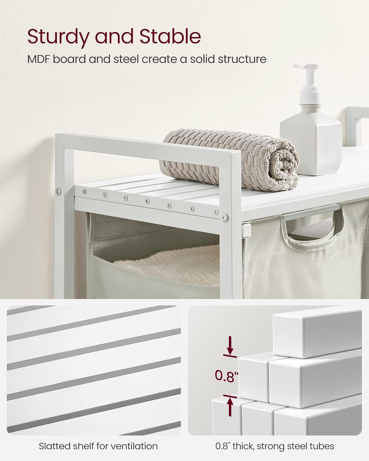 - Sturdy and Stable: With a 0.8" thick steel frame and MDF panel, the shelf of this laundry basket supports up to 44 lb. The Oxford fabric bags are water-resistant, and the 4 adjustable feet provide excellent stability
