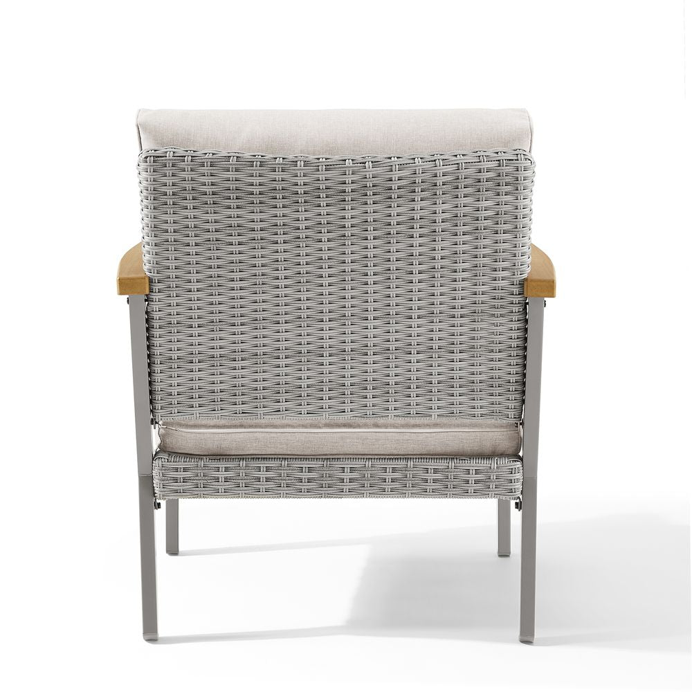 - - Material: Synthetic PE Rattan, Faux Wood Armrest, Synthetic Polyester Fabric Cover, Foam Padding, Powder-Coated Steel Frame, Polypropylene Feet