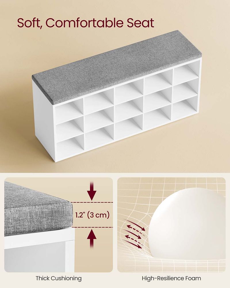 Nordic Hygge Shoe Bench with Cushion,15 Compartments