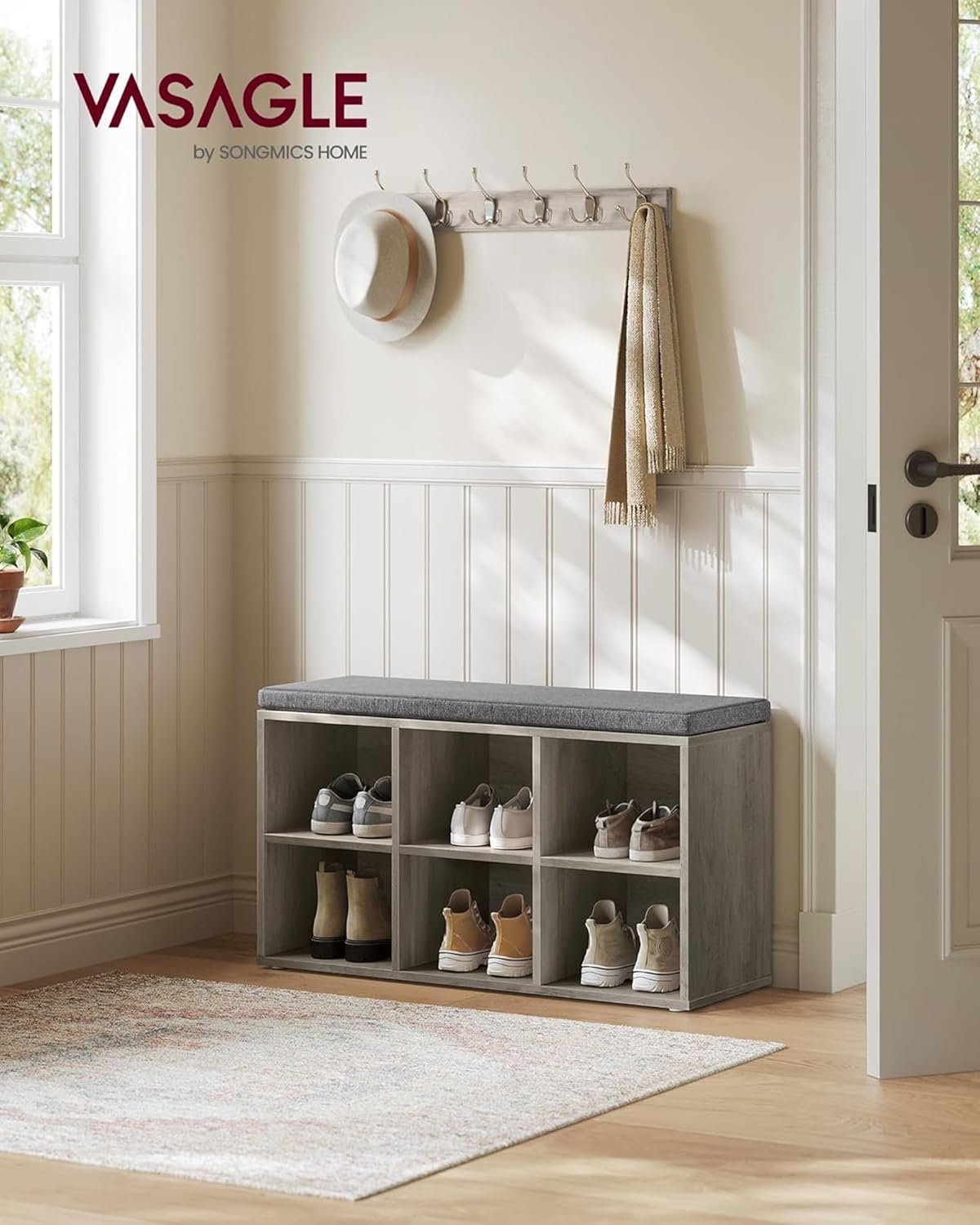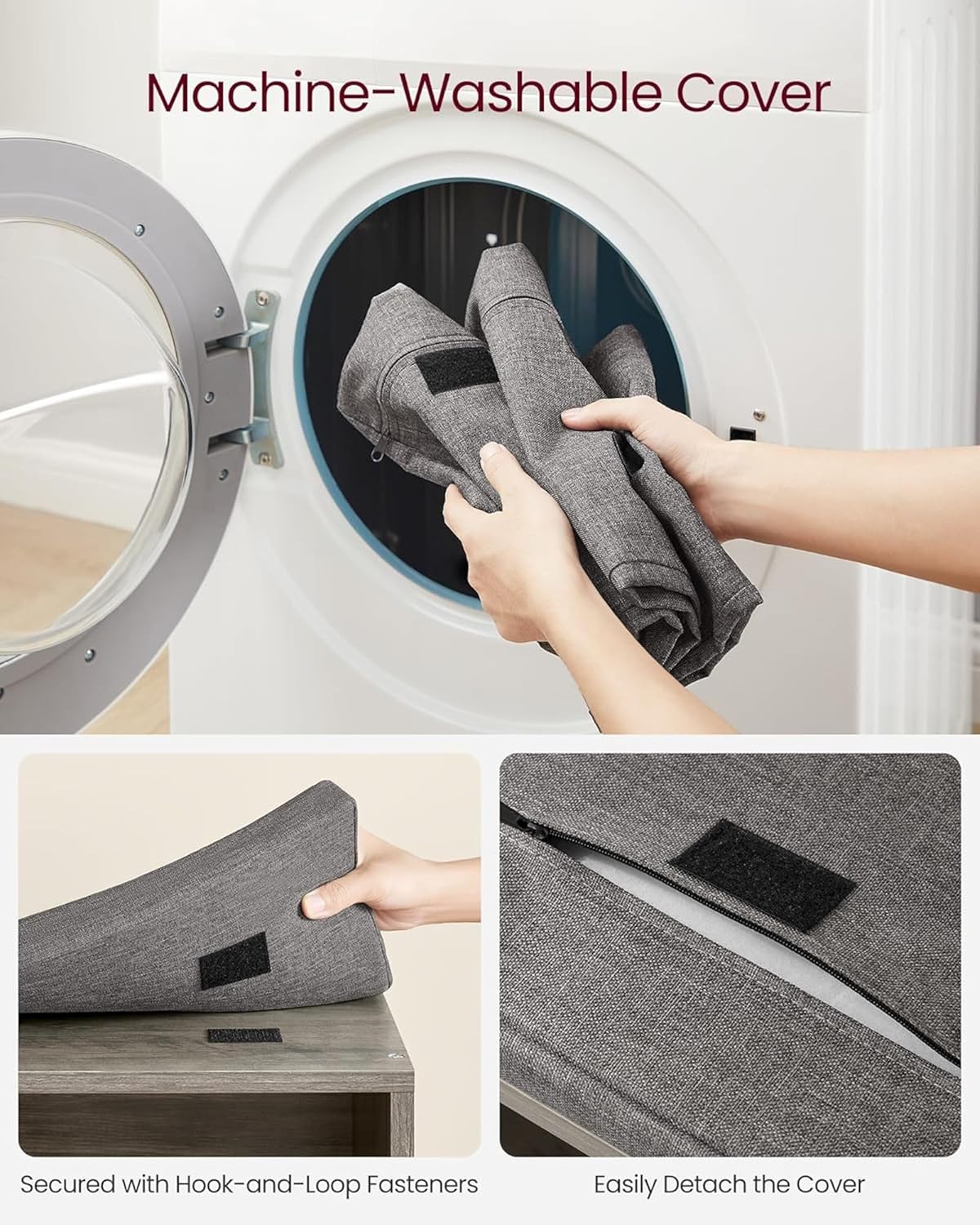 - 【SHOE BENCH WITH A CUSHION】After a long day at work, come home and relax on the comfortable cushion atop this shoe bench with storage. If it gets dirty, the removable cushion cover can be easily hand-washed