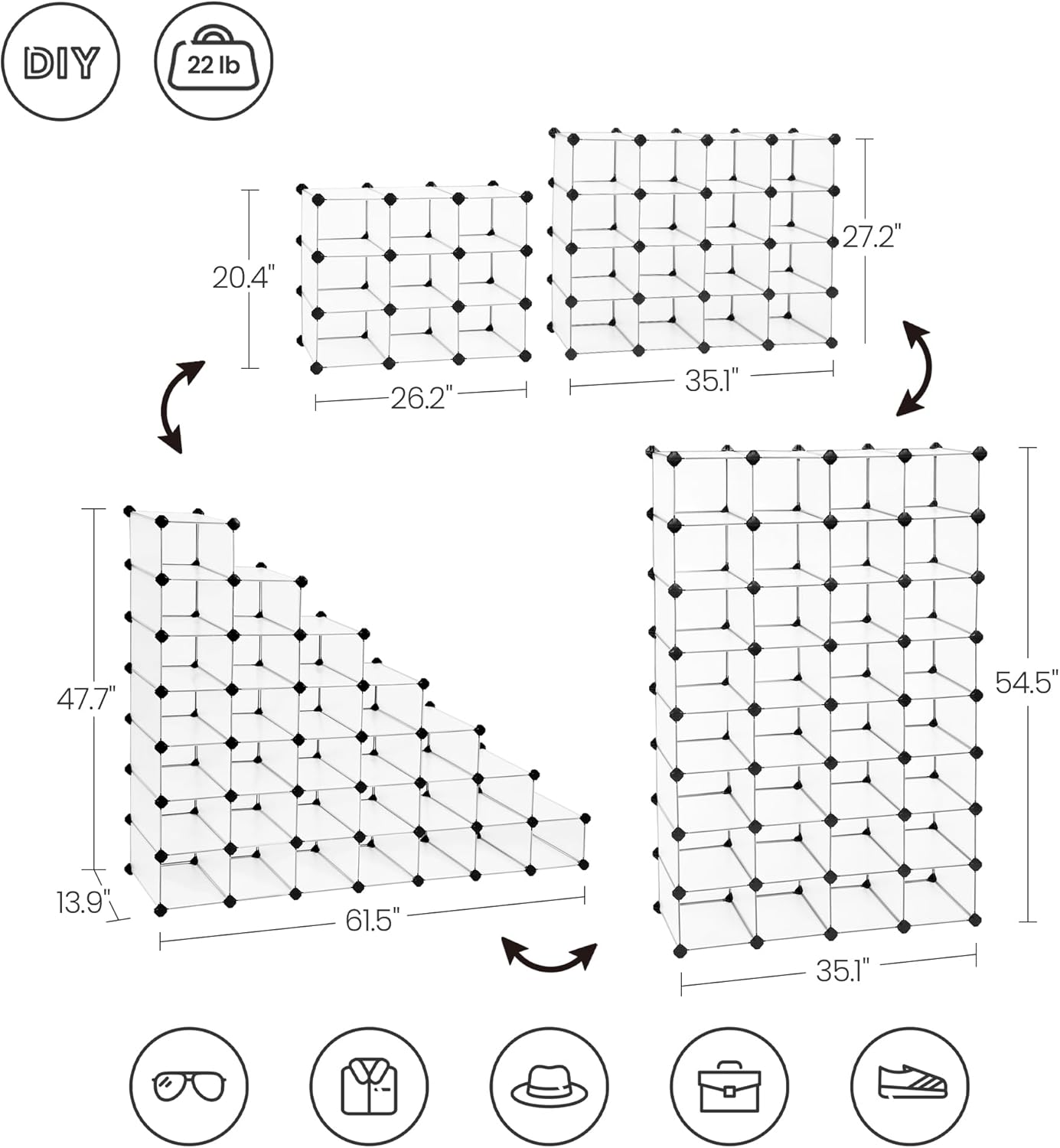 - 【UNLOCK ITS POTENTIAL】 Whether you prefer a 4 x 4 storage unit, step-shaped shelving, 2 units separated for different purposes, or other shapes to adapt to your space, this shoe rack can be customized within the limit of included parts