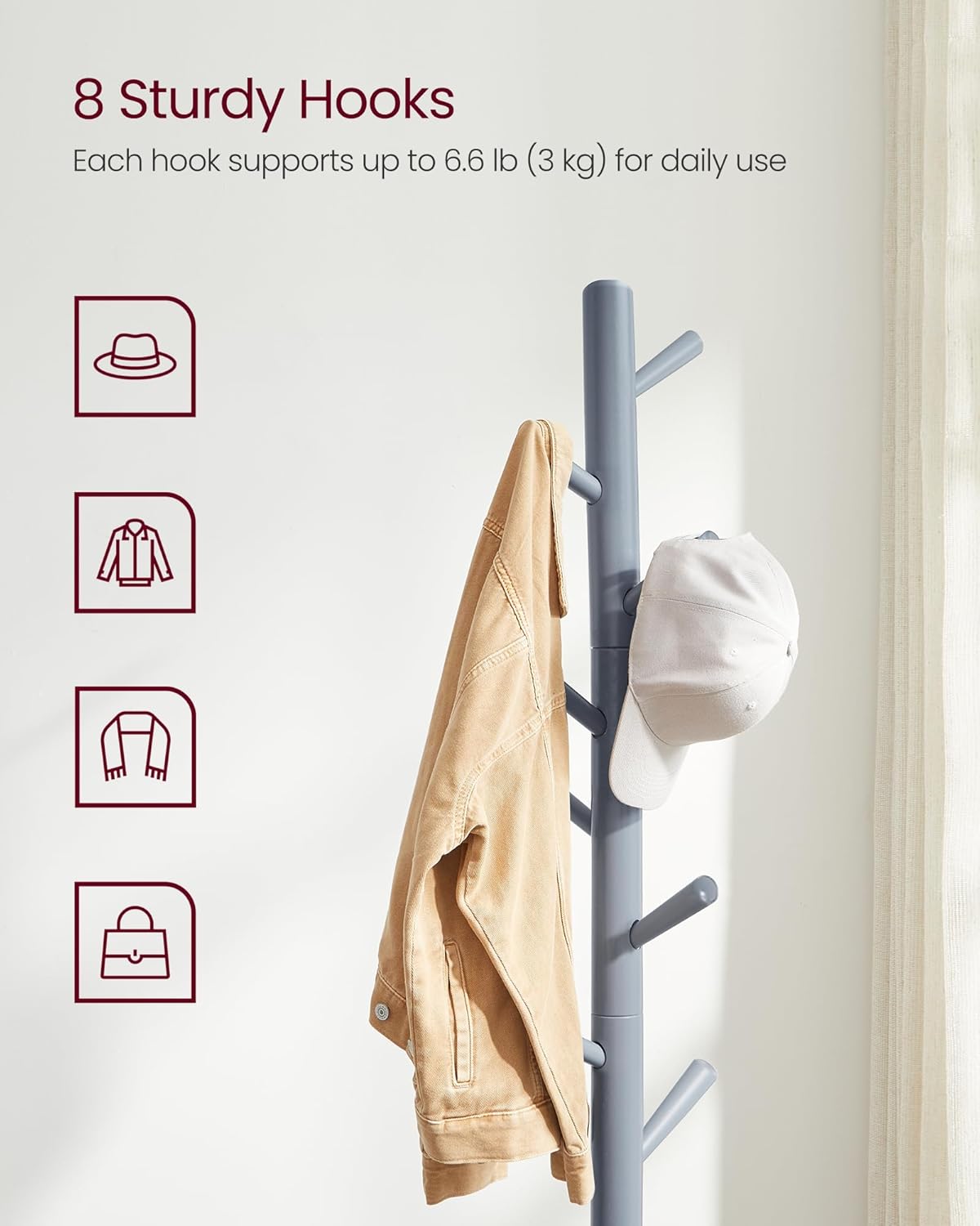 - Space-Saving & Strong: This 18.2"D x 15.9"W x 68.7"H coat rack fits even in narrow hallways and supports a heavy load. The 8 hooks can be used for hanging coats, bags, and scarves