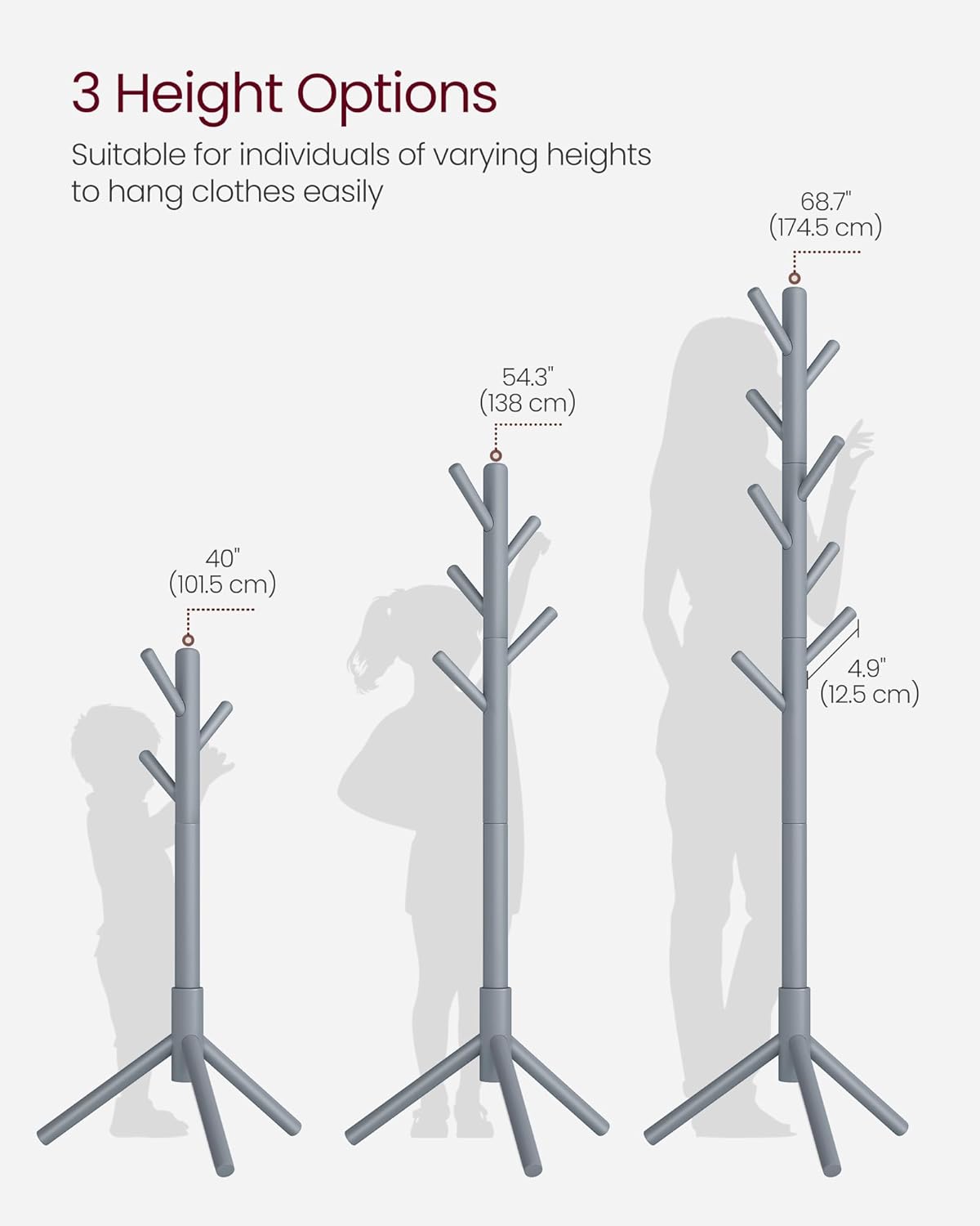 Nordic Hygge Solid Wood Free-Standing Tree-Shaped Coat Rack – 8 Hooks 3 Height Options in Gray